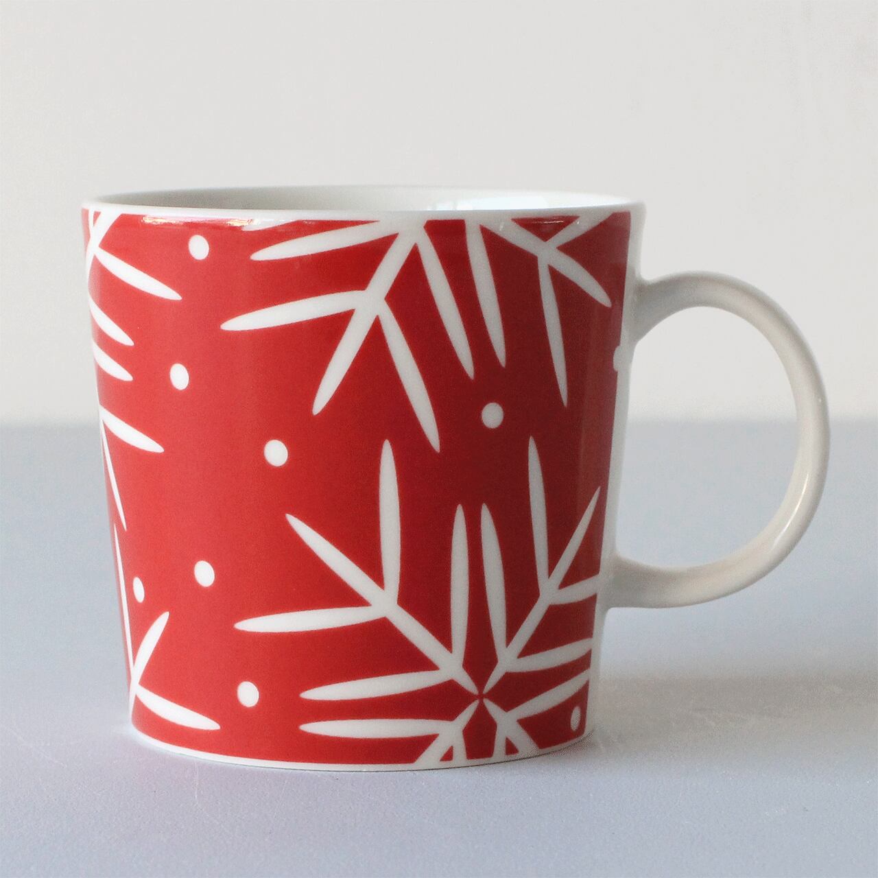 2007年に冬季限定で生産されたティーマのマグ。雪の結晶柄が表面にデザインされています。