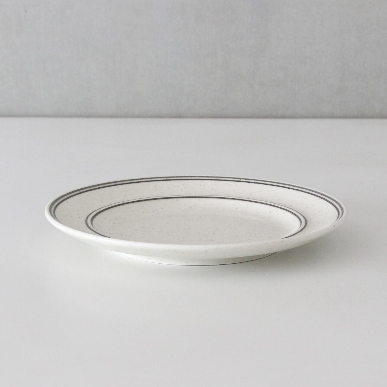 白地に斑点が全体的に入っており、縁部分にはラインが描かれています。